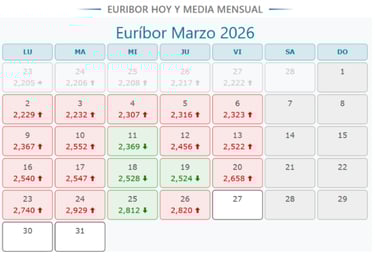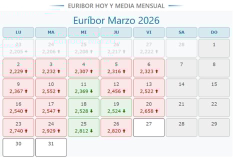Euribor marzo 2026. Fuente: www.euribordiario.es