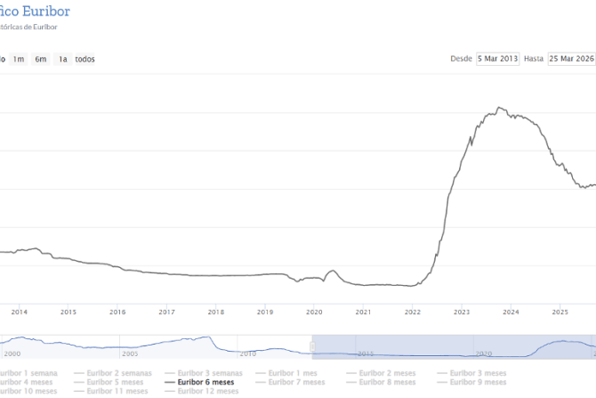 Desde el comienzo de la guerra en Irán, el EURIBOR ha pasado del 2,222% al 2,820% (cierre del jueves), lo que provoca que una hipoteca a 25 años por valor de 150.000 euros al mes y diferencial del 1%, la hipoteca en la revisión semestral se vaya a incrementar de los 850 euros al mes a los 876 euros.